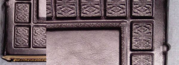 ![]() ![]() Oprawa skórzana z wolnym grzbietem, szycie ręczne ułatwiające swobodne otwieranie księgi, prawdziwe zwięzy, wyklejka z papieru ręcznie marmoryzowanego z widocznym skórzanym falcem, kapitałka okrągła szyta ręcznie, tłoczenia ślepe na okładzinie przedniej i grzbiecie, złocenia na obwodzie lustra (wewnętrznej strony okładki) oraz na okładce przedniej. Format 27 x 31 cm., 26 ark. papier ozdobny 150 g/m2. - skóra cielęca brunatna nr 3: 124 cba - wyklejka z papieru ręcznie marmoryzowanego |