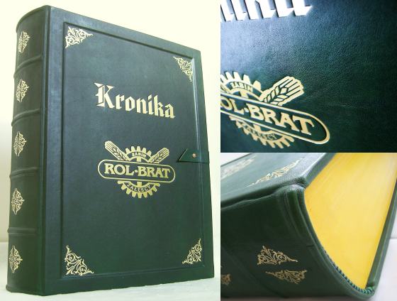 ![]() Oprawa skórzana, szycie ręczne kart, wysokie zwięzy na grzbiecie, kapitałki szyte ręcznie, tłoczenia złotem, pasek skórzany zapinający Księgę, barwione brzegi kart, reliefowane płaszczyzny okładek Format A3+ cm, 300 kart, 300 przekładek dystansujących, papier ozdobny 140 g/m2 - skóra naturalna - wyklejka z papieru ozdobnego |