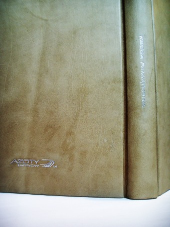 ![]() Oprawa skórzana, szycie ręczne kart, kapitałki szyte ręcznie, tłoczenia srebrem Format A3+, 150 kart, papier ozdobny 140 g/m2 - skóra naturalna zamszowa - wyklejka z papieru ozdobnego |