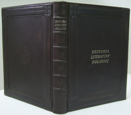 Oprawa skórzana stylizowana, kapitałka szyta ręcznie, tłoczenia tytulatury na grzbiecie i okładce, reliefowanie okładek, złocenie krawędzi kart, sygnowana. - Format ca B4 - skóra kozia - wyklejka papier z epoki ozdobny |