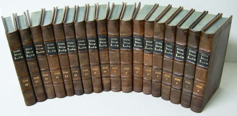 Oprawa stylizowana starej edycji, kopia opraw z końca XVIII wieku, oprawa skórzana ze skóry ręcznie antykowanej, wyklejka przeszywana, kapitałka płaska szyta ręcznie, szyldziki i tytulatura na grzbiecie, tłoczenia ślepe okładek, brzegi kart barwione Format, ca B7 skóra kozia wyklejka z dawnego papieru |