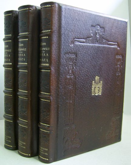 Oprawa skórzana stylizowana, wyklejka z papieru marmoryzowanego, kapitałka płaska szyta ręcznie, sztuczne zwięzy, złocona tytulatura, tłoczenia ślepe grzbietu i okładek, sygnowana; . - Format: rebinding - skóra licowa - wyklejka z papieru marmoryzowanego (marmurek) |