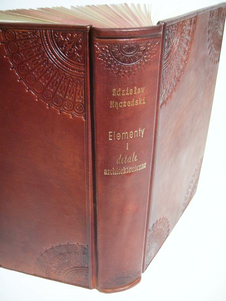 Oprawa skórzana stylizowana, kapitałka szyta ręcznie, głębokie tłoczenia ślepe i złotem, stylizacja okładek, barwienie brzegów kart. - Format ca B5 - skóra naturalna - wyklejka papier ręcznie antykowany |