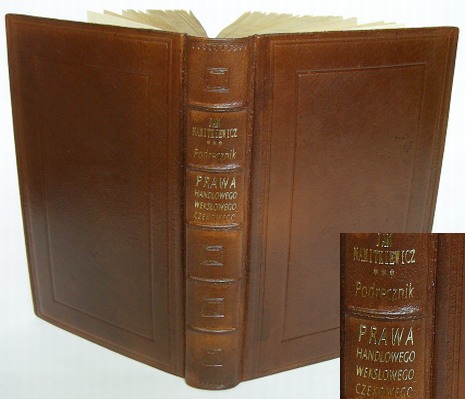 Oprawa skórzana stylizowana, wyklejka z papieru ręcznie marmoryzowanego, tłoczenie złotem tytulatury na grzbiecie, zdobienia suche na okładkach, kapitałka szyta ręcznie - Format ca B5 - skóra cielęca |