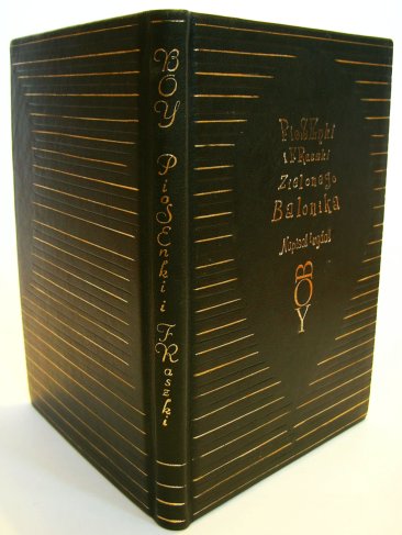 Oprawa skórzana stylizowana, kapitałka szyta ręcznie, tłoczenia złotem i ślepe, bogata stylizacja okładek, barwienie krawędzi kart. - Format ca B5 - skóra cielęca - wyklejka papier ręcznie marmoryzowany |
