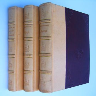 Oprawa półskórzana uproszczona, obleczona płotnem, wyklejka konserwatorska, wklejana w scyzurę z papieru czerpanego, szycie na 2 taśmy, kapitałka szyta ręcznie, sztuczne zwięzy, tłoczenia ślepe grzbietu, pozłacana bordiura na okładzinach. - Format: A5, 24 ark. - skóra świńska nr 9: licowa 067 terra SPN - płótno |