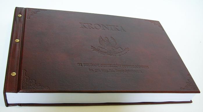 ![]() Stylizowana oprawa skórzana skręcana śrubami mosiężnymi, głębokie tłoczenia ślepe Format ca A3+ poziomy, ca 200 kart - skóra naturalna - wyklejka z papieru ozdobnego |