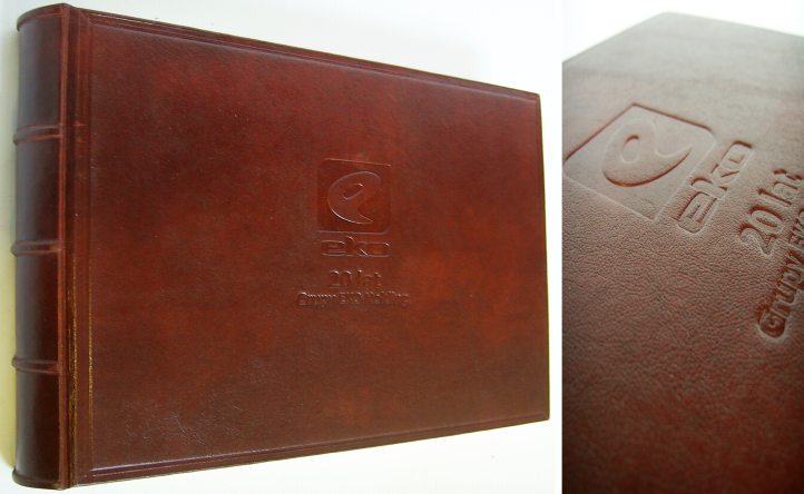 ![]() Oprawa skórzana, karty szyte ręcznie, zwięzy na grzbiecie, kapitałki szyte ręcznie, głębokie tłoczenia ślepe, barwione brzegi kart Format ca A3+ poziomy, ca 200 kart - skóra naturalna - wyklejka z papieru ozdobnego |