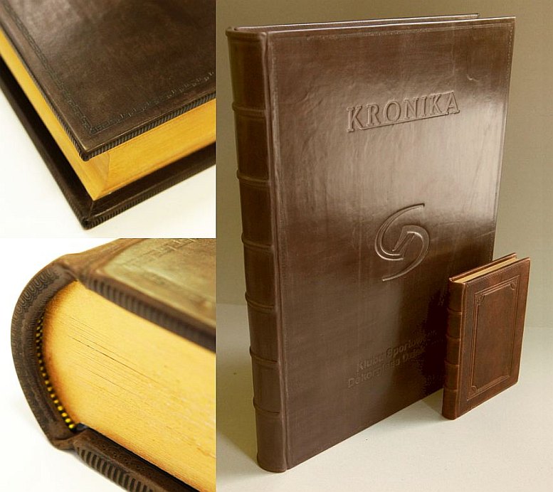 ![]() Oprawa skórzana albumowa, ręczne szycie z przekładkami dystansującymi karty, zwięzy na grzbiecie, kapitałki szyte ręcznie, tłoczenie suche na okładkach i grzbiecie, złocone brzegi kart Format 61 x 43 cm 200 kart, 90 przekładek papier ozdobny 150 g/m2 skóra licowa antykowana wyklejka z papieru ozdobnego złocone brzegi kart |