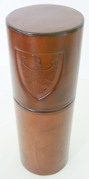Tuba na dyplom, skórzana, tłoczenie ślepe w skórze, wyklejona wewnątrz flokiem.